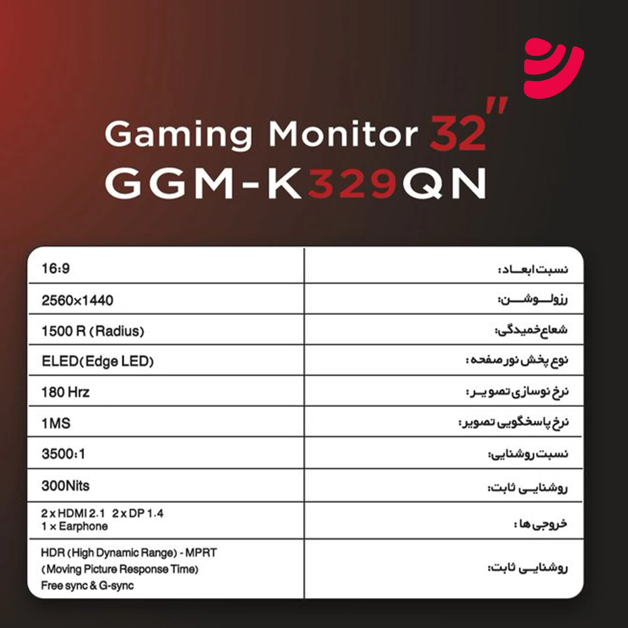 مانیتور خمیده گیمینگ 32 اینچ جی پلاس مدل GGM-K329QN